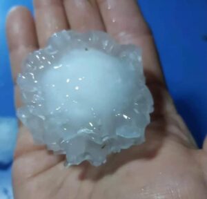 Las piedras cubrieron veredas y patios, y el aguacero dejó anegamientos. No se reportaron heridos; sí daños menores en techos...