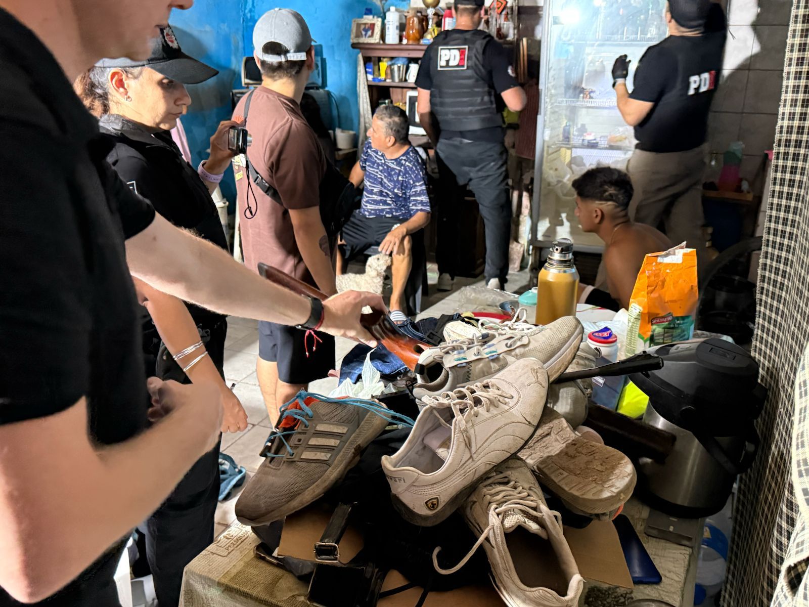 Durante la conferencia realizada en el Ministerio de Justicia y Seguridad, el director provincial de Investigación Criminal, Rolando Galfrascoli, explicó que «junto con la PDI y la colaboración de las unidades especiales de la Policía de Provincia, hemos realizado estos allanamientos con resultados positivos en cuanto a lo que se va a buscar en este tipo de casos», y enumeró que se secuestraron «armas de fuego, estupefacientes, dinero en efectivo, y tenemos personas detenidas».