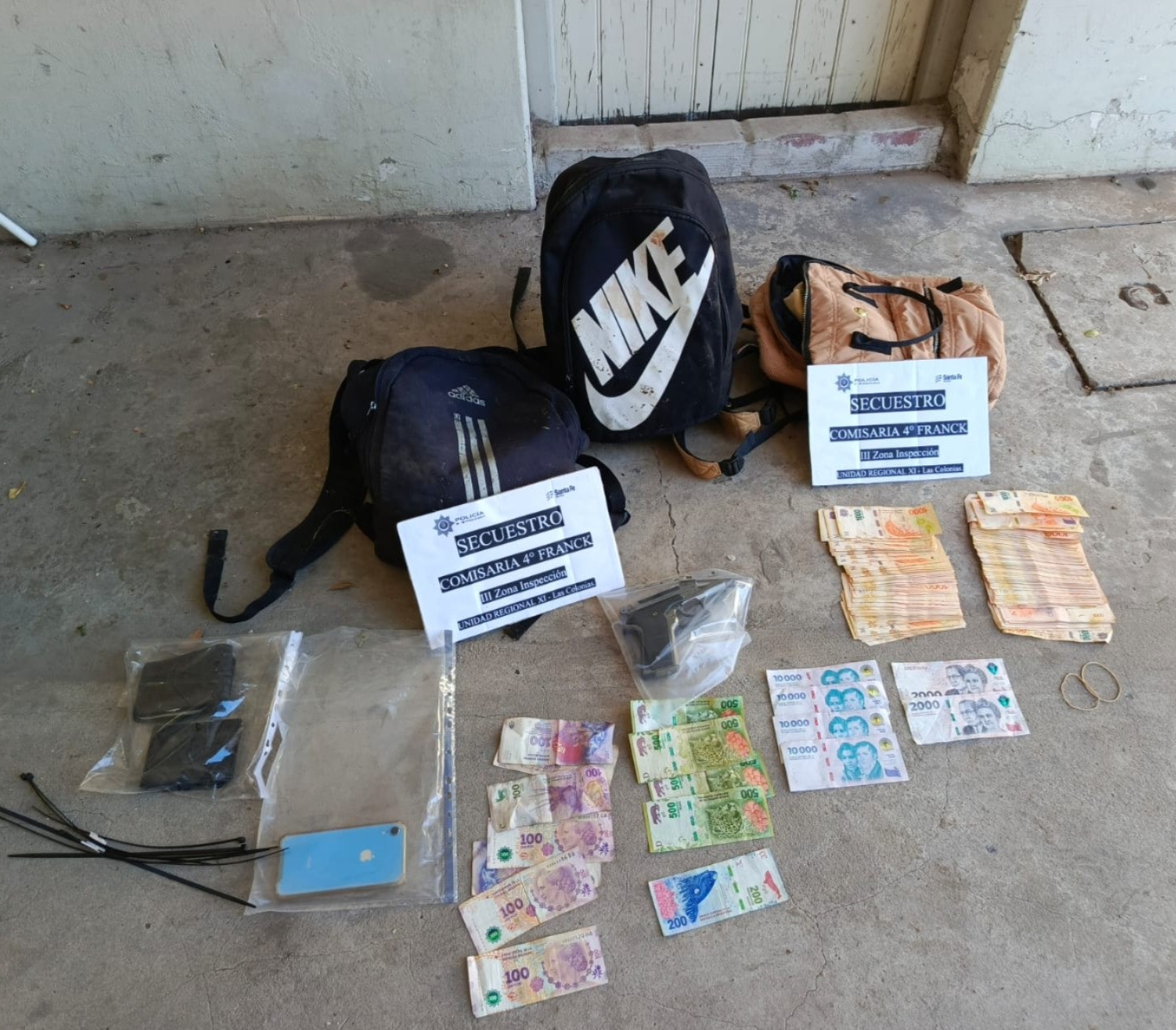 Durante el transcurso de la mañana de este miércoles y tras una persecución coordinada mediante un operativo cerrojo efectuado en conjunto por efectivos integrantes de reparticiones dependientes las Agrupaciones Cuerpos y de Orden Público que conforman la Unidad Regional XI del departamento Las Colonias, junto a personal del Comando Radioeléctrico santotomesino de la Unidad Regional I, actuantes de ambas sedes policiales procedieron a la aprehensión de dos jóvenes y al secuestro de una réplica de arma de fuego, dinero en efectivo y demás pertenencias que habrían sido sustraídos. Previamente, los uniformados tomaron conocimiento del hecho delictivo concretado y ante la novedad, rápidamente implementaron un amplio dispositivo policial en conjunto, efectuado bajo la coordinación de personal del Despacho de la Central de Emergencias 911 de la ciudad de Esperanza, quien individualizaría a los malvivientes a bordo del rodado para indicarle luego a los actuantes que prosiguieran con el seguimiento del vehículo por caminos rurales aledaños a la Ruta Provincial N° 5.