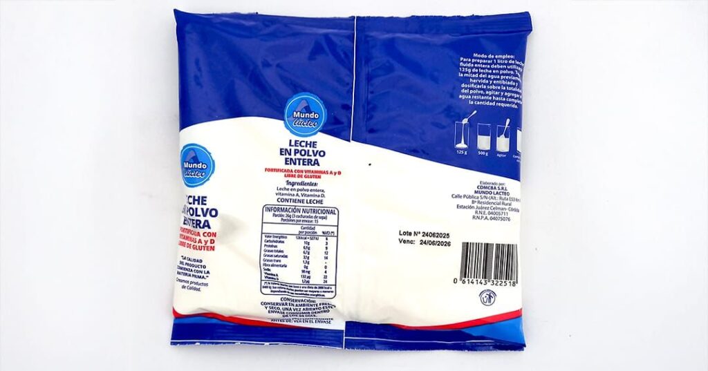 _Se trata de la leche en polvo entera fortificada con vitamina A y D Libre de Gluten. Está prohibida la tenencia, transporte, comercialización y exposición del producto en todo el territorio provincial._