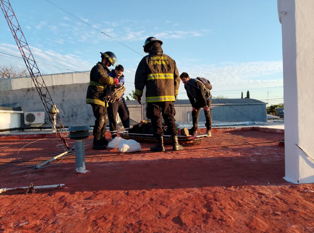 Bomberos rescataron a un operario que cayó de una antena en Rafaela y quedó atrapado en el techo de una casa