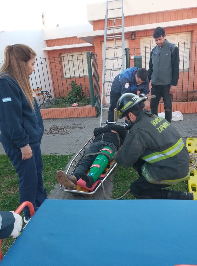 Motivo por el cual la dotación le brindó asistencia prehospitalaria y, con el uso de una escalera y técnicas de rescate, logró bajarlo de manera segura y ponerlo a resguardo. Finalmente, fue asistido por personal médico y trasladado al nosocomio local.