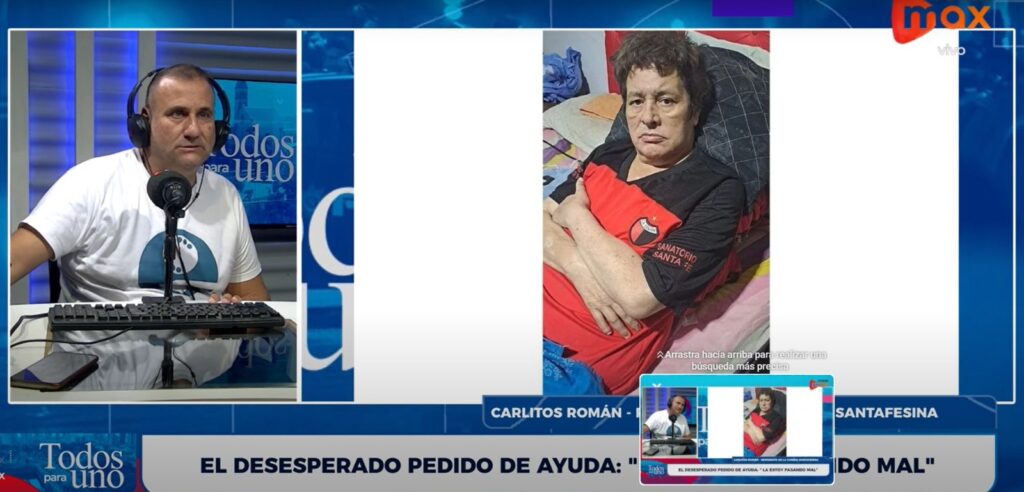 Carlos Raúl Román, contó que la ex pareja le vació la cuenta bancaria. “Me robó el dinero que yo tenía para comer. Se llevó todo. Todo se llevó. Y hoy vivo de la generosidad de la gente que colabora conmigo”.