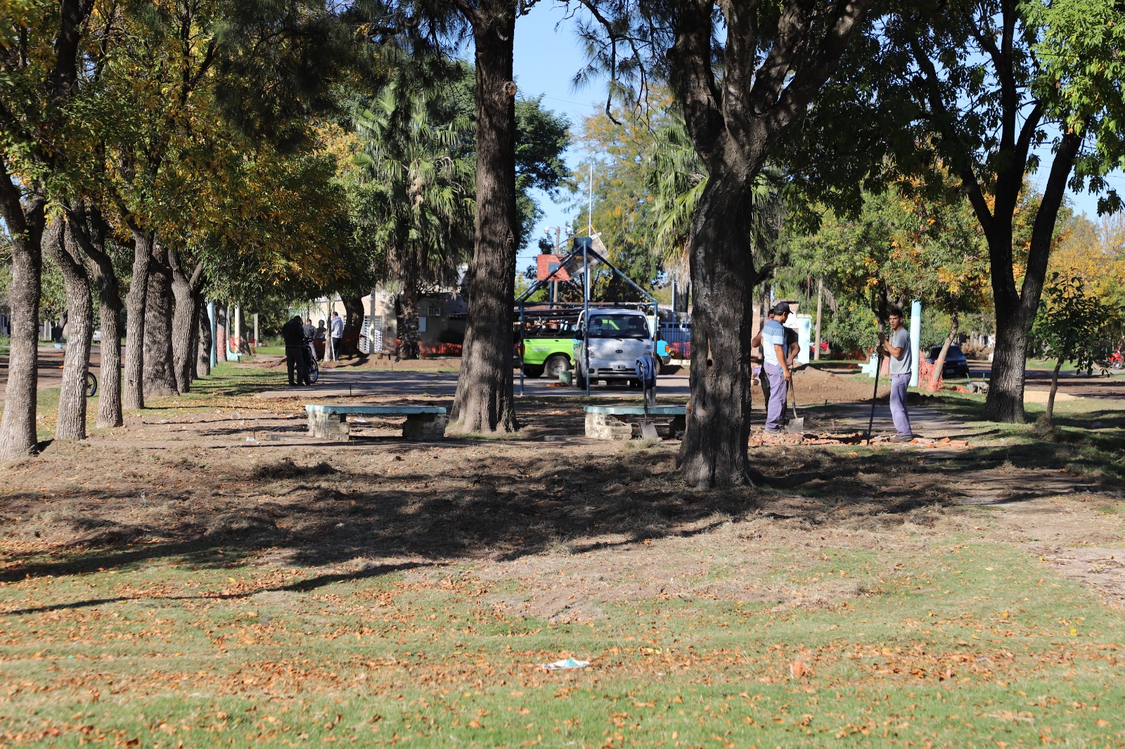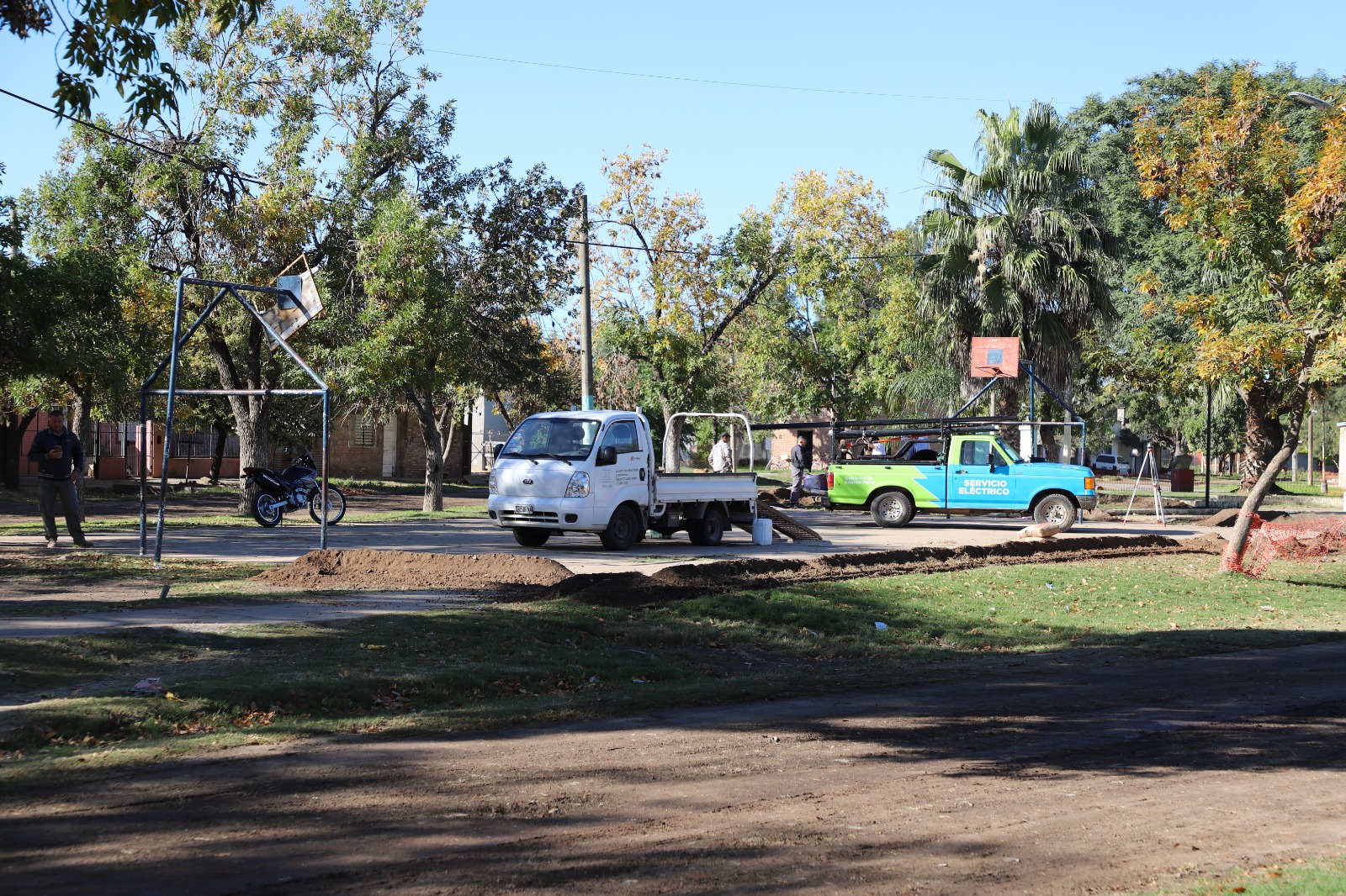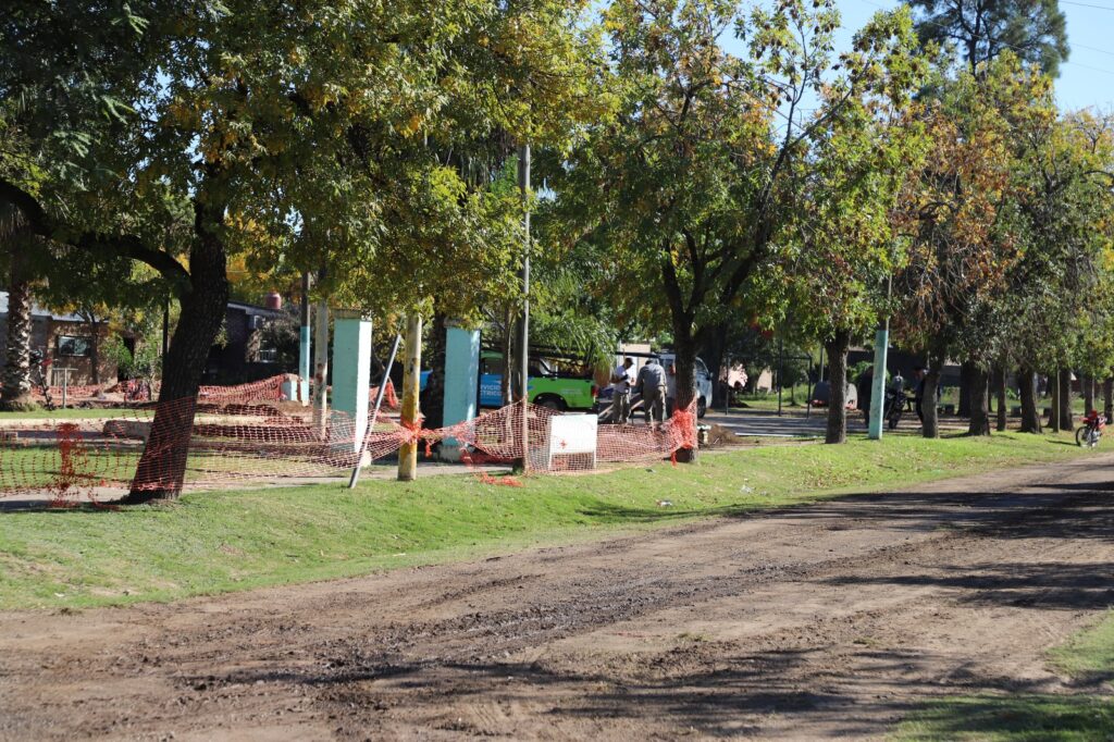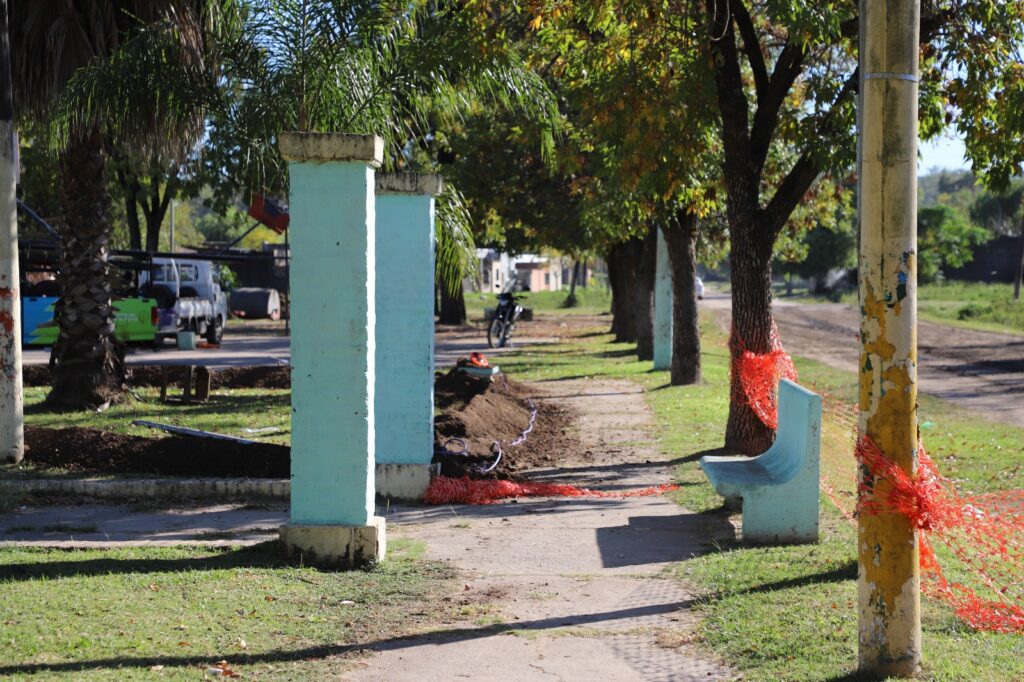 Personal municipal se encuentra realizando trabajos de zanjeo para colocar nuevo alumbrado público en la plazoleta “Manucho Cullen” en el barrio oeste de la ciudad de Laguna Paiva.