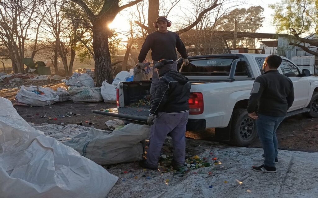 Los concejales del bloque socialista de Recreo recolectaron las tapitas plásticas que los vecinos de Recreo depositaron en el corazón metálico instalado en la Plaza San Martín. Luego las trasladaron hasta la planta de la empresa Quanta, en la ciudad de Paraná, donde serán recicladas y utilizadas para crear elementos de equipamiento urbano.