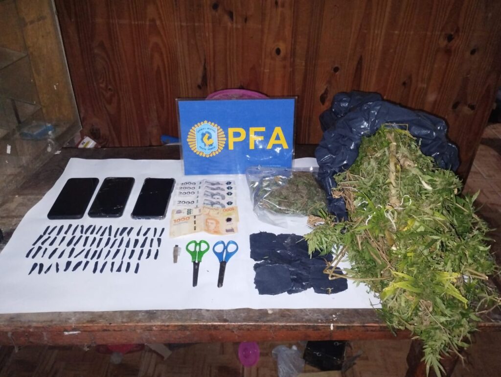 Por otra parte, en los allanamientos se secuestró un arma de fuego, un aire comprimido, una caja con municiones; 6 kilos 610 gramos de ramas de cannabis en proceso de secado, dos plantas de cannabis sativa que pesaron más de 1 kilo 870 gramos y cocaína fraccionada en envoltorios, preparada para su venta al por menor.