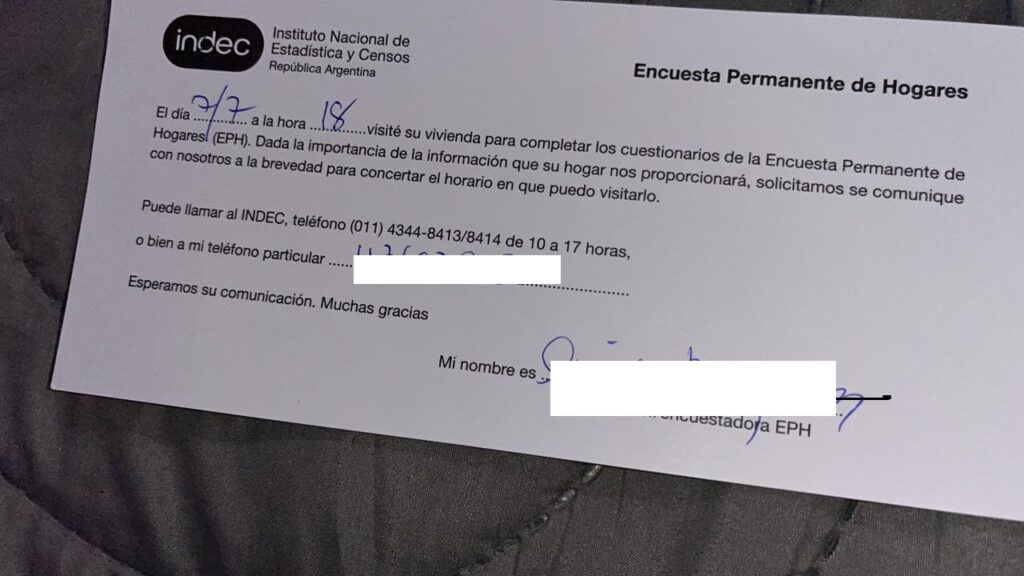 En ese contexto, se advirtió que la información que circula por WhatsApp es falsa, ya que es verdad que los encuestadores dejan una notificación en los domicilios que visitan cuando no encuentran a nadie. No obstante, se recomienda siempre adoptar una serie de medidas de seguridad para evitar estafas, robos u otros delitos.