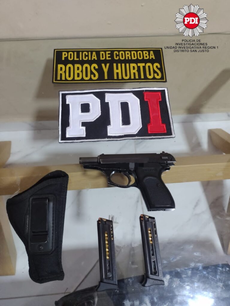 Este jueves, personal de PDI San Justo, en forma conjunta con fuerzas de seguridad de la provincia de Córdoba, llevó adelante las medidas judiciales y secuestró el auto Peugeot 208, cuatro teléfonos celulares, $325.000 en efectivo y una pistola marca BERSA calibre .22 con dos cargadores municionados.