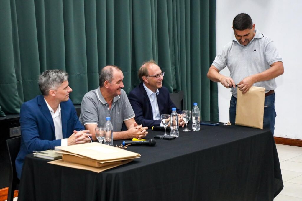 El acto se desarrolló en la Casa de la Historia y la Cultura del Bicentenario y contó con la presencia del el intendente Omar Colombo; el subsecretario provincial de Arquitectura y Obras Públicas, Lucas Condal; y el director provincial de la Agencia de Cooperación Económica y Financiamiento Externo, Gonzalo Saglione, entre otros.