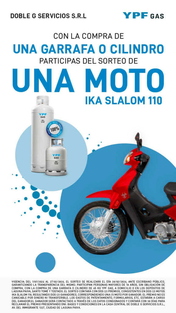 La empresa Doble G Servicios sortea una moto OK a los clientes que compren en Laguna Paiva, Santo Tomé o Recreo.