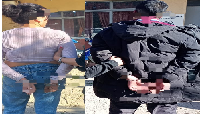 El uniformado sufrió roturas en su prenda de vestir, pero la agresora no logra herirlo. Seguidamente, se procede a la aprehensión de ambos. El hombre de 18 años y su hrmana de 25 años,