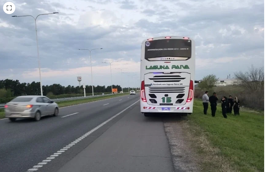 Un ómnibus que trasladaba personal policial sufrió esta tarde un presunto impacto en el vidrio delantero derecho cuando circulaba a las 18:00 hs por la AP01, kilómetro 19, mano descendente hacia Rosario.