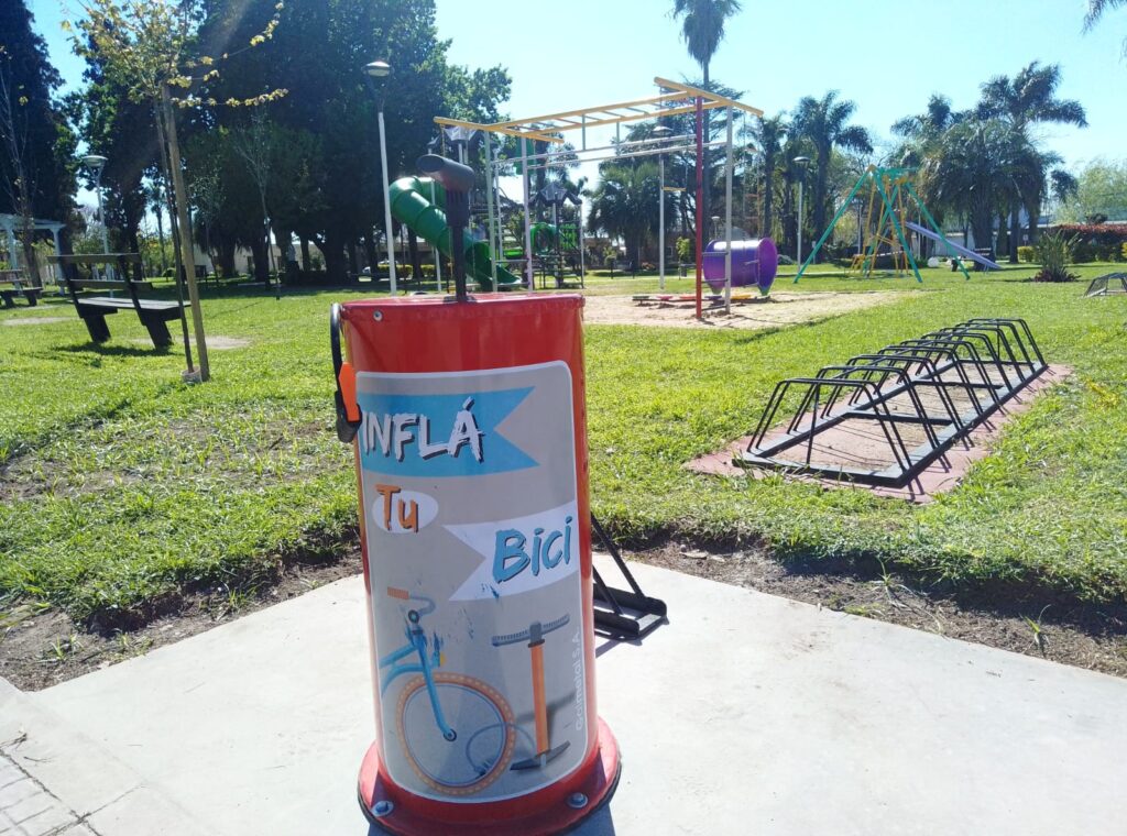 La comuna de Nelson instaló el primer inflador comunitario en un espacio público de la localidad. En esta oportunidad, el lugar elegido fue la Plaza de San Martín.