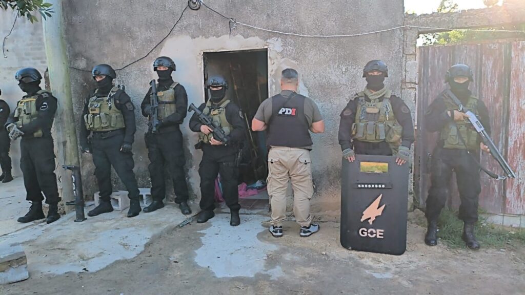 El procedimiento -que contó con la participación de grupos tácticos de la Policía de la Provincia- se efectuó en una vivienda ubicada a metros de la intersección de las calles Centurión y Monzón. Allí se detuvo a D.M.G. En el lugar también se secuestraron armas de fuego y teléfonos celulares. Asimismo, se allanó la vivienda lindante, aunque sin resultados de interés para la causa.