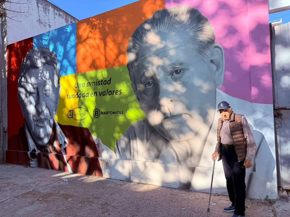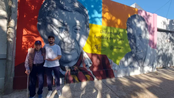 El querido y respetado Luis Landriscina visitó el mural que el artista casildense Gabriel Griffa realizó y en que lo retrató junto a su gran amigo, el Dr. René Favaloro.