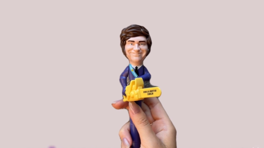 Lapicera Milei con motosierra y frases grabadas que promocionan diputadas libertarias en redes