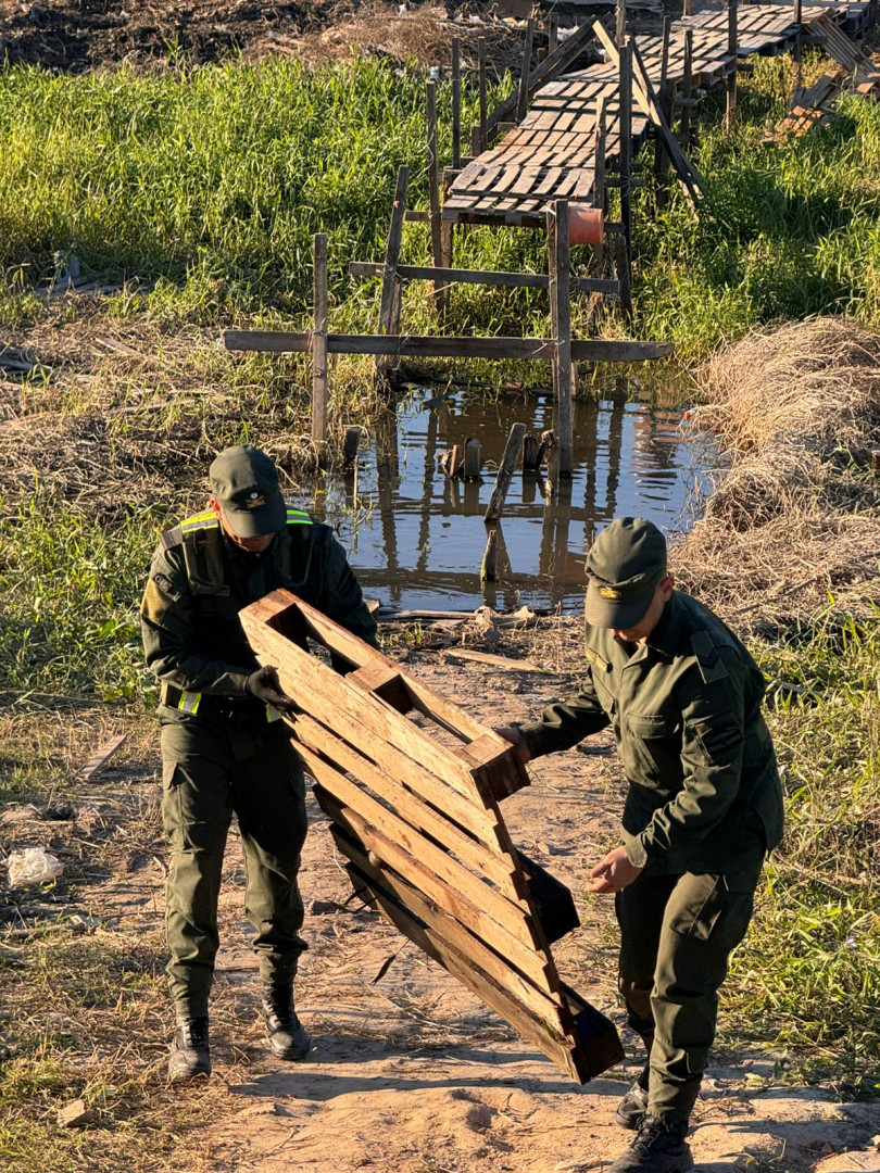 Efectivos de la Agrupación VI “Formosa”, los Escuadrones 15 “Bajo Paraguay”, 16 “Clorinda” y la Sección de Investigaciones Antidrogas “Clorinda”, llevaron a cabo una operación denominada “Desarme”, la cual consistió en la destrucción de *25 puentes clandestinos que se hallaban sobre el río Pilcomayo (Límite Internacional Fronterizo).