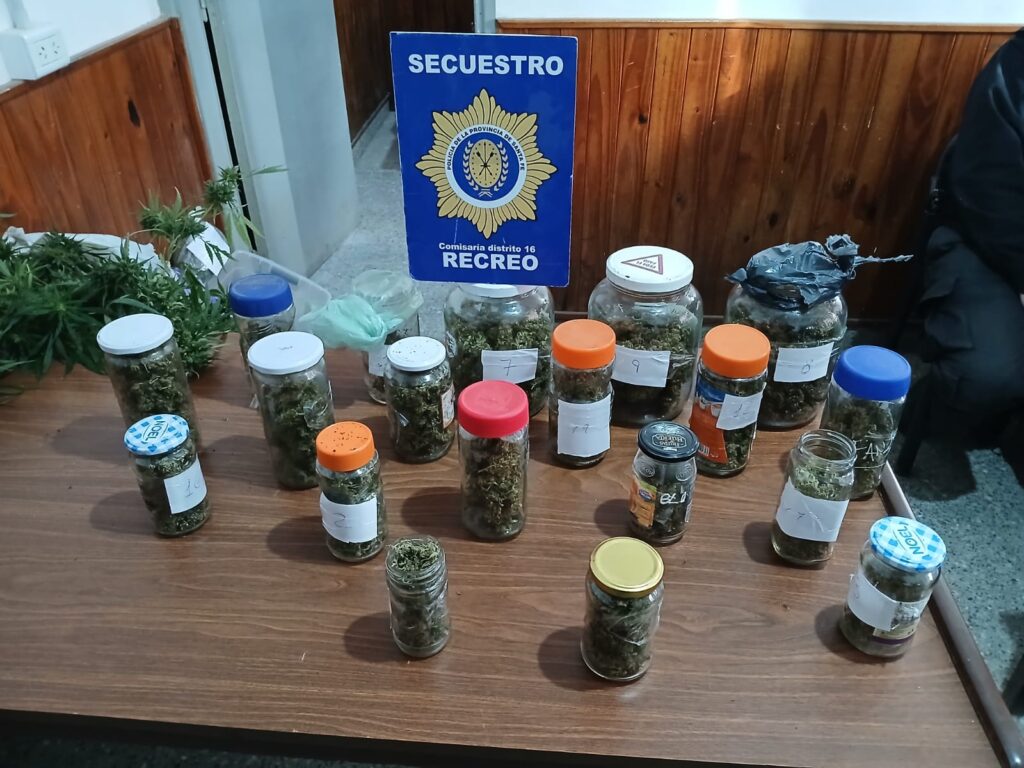 Luego de obtener la orden judicial, los uniformados se dirigieron hasta un domicilio, donde, según tareas investigativas previas, logran secuestrar 17 tarros de tamaños varios con flores de marihuana, 2 bolsas de comercio con flores de marihuana, un taper grande con flores de marihuana, 3 celulares, 1 balanza de presión, 2 plantas enterradas en el parte delantera de la vivienda.