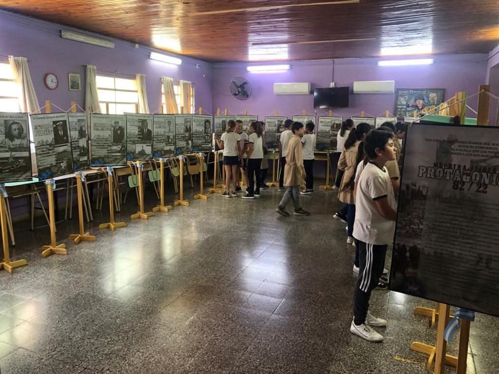 La muestra itinerante contiene 20 banner con la descripción de cada uno de ellos con la participacion de los ex combatientes de Laguna Paiva. La actividad es organizada por la cooperadora escolar de la escuela 688. Forma parte del acto que organiza la municipalidad