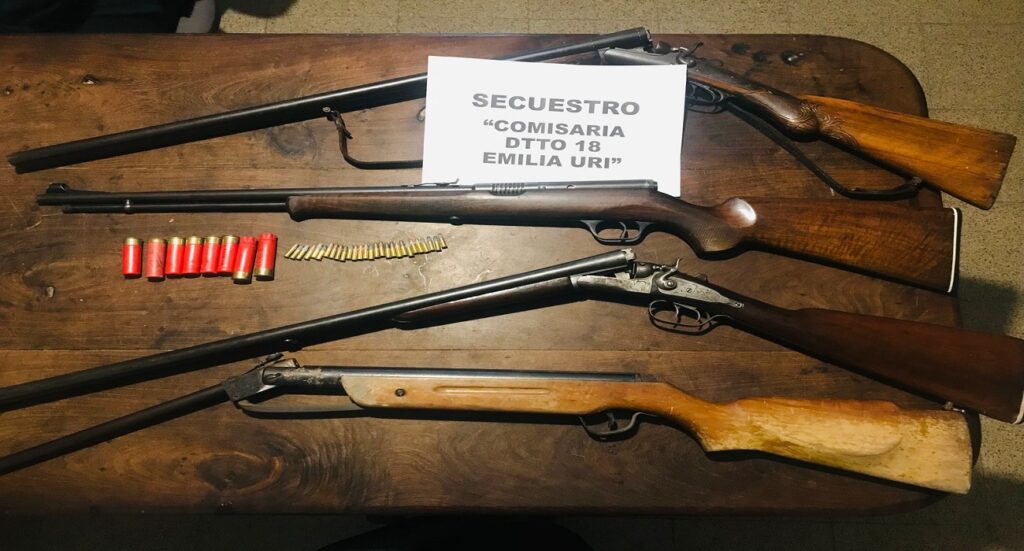 Este domingo en una finca ubicada en zona rural de la localidad de Emilia, policías de la Comisaría Distrito 18° incautaron dos escopetas calibre 16, una carabina calibre 22, todas con cartuchos intactos, además de un rifle de