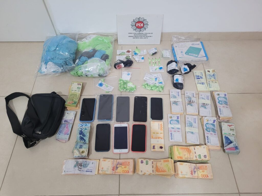 Además de las seis personas detenidas, fueron incautados 105 envoltorios con cocaína fraccionada preparada para su venta al menudeo y marihuana. Asimismo, se incautó un auto; dos balanzas digitales; 14 teléfonos celulares y un total de 2.300.000 pesos.