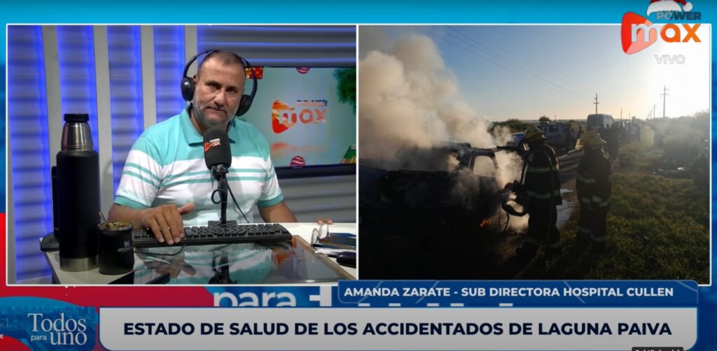 En diálogo con Gustavo Vega en «Todos Para Uno Diario» la sub directora del hospital Cullen , Amanda Zarate, dio detalles de cómo se encuentran los jovenes de Laguna Paiva heridos en un accidente de tránsito en el kilómetro 6 de la Ruta 4. MIRA LA NOTA