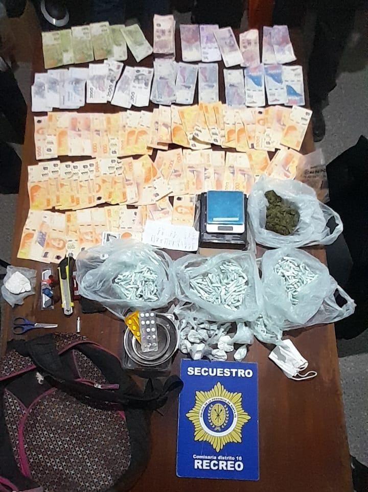 Tiraron dos mochilas mientras huían de la policía en Recreo, contenían droga, dineros y una balanza