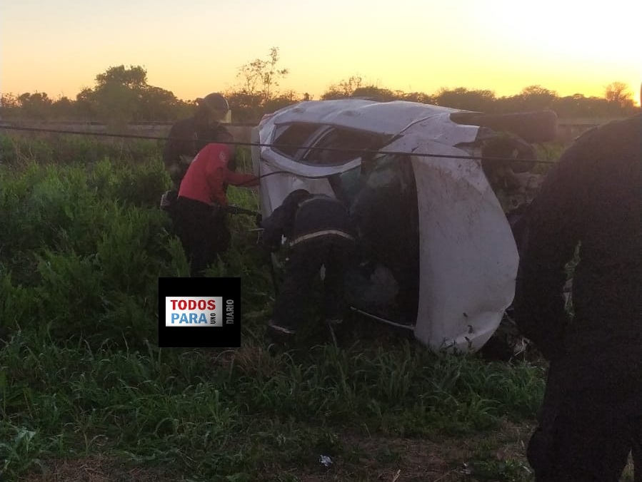 Por razones que se tratan de establecer, un vehículo marca Toyota Corolla terminó dado vuelta en el zanjón al costado de la ruta Nacional 11 a la altura de la curva de Iriondo.