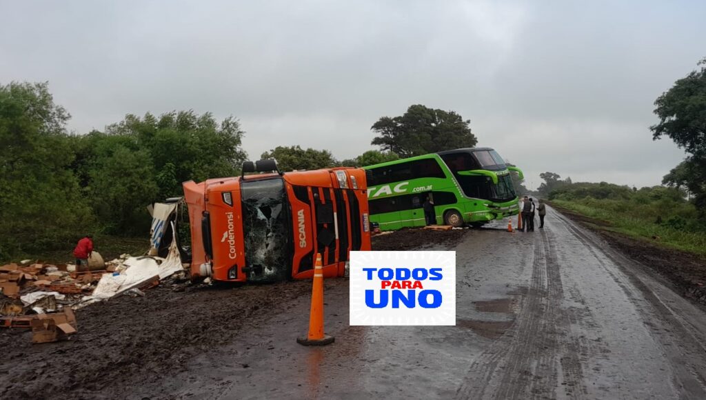 Un camión que transportaba quesos tumbó en ruta 4 Nelson; luego, un colectivo choca el móvil policial que custodiaba el lugar