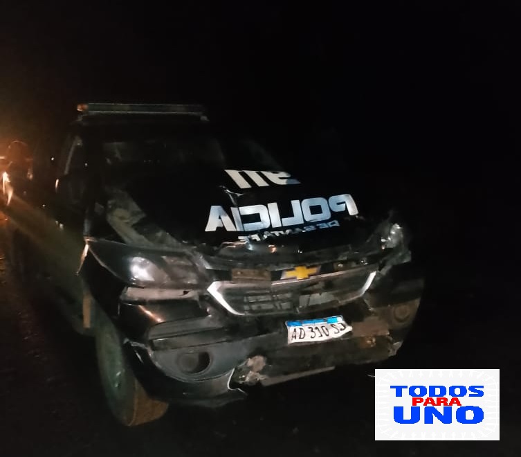 Momentos más tarde, un colectivo que circulaba por la zona choca al móvil de la Policía de Seguridad Vial y se genera otro siniestro.