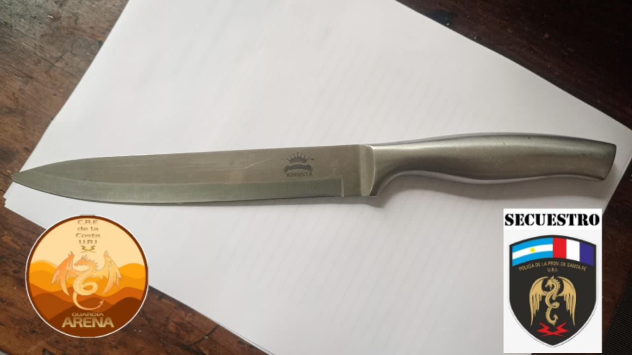 También se secuestró una cuchilla metálica de aproximadamente 33 cm de largo total.