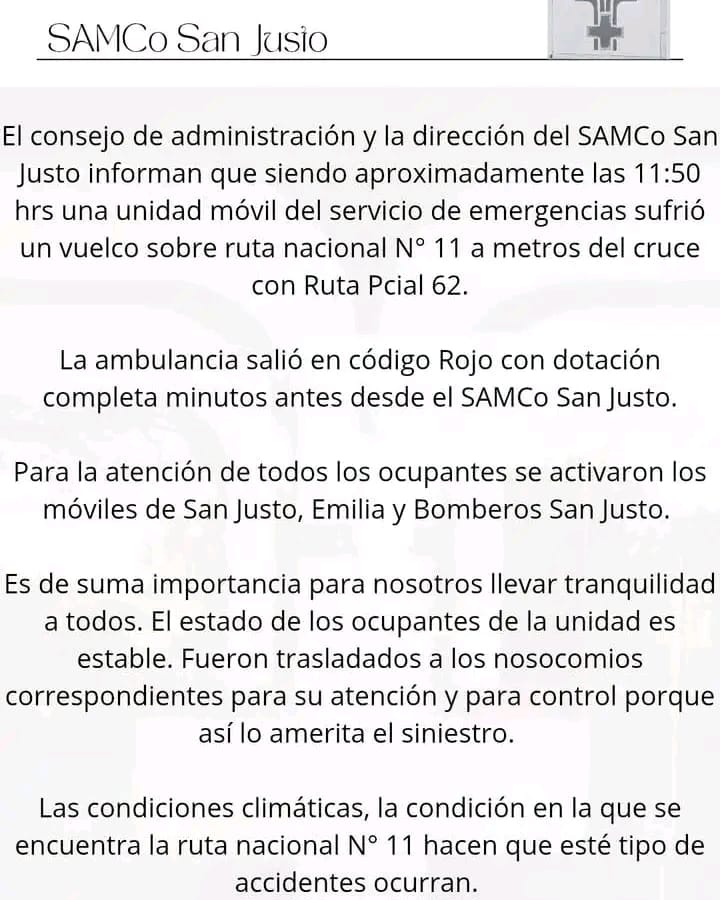 EL COMUNICADO DEL SAMCo DE SAN JUSTO