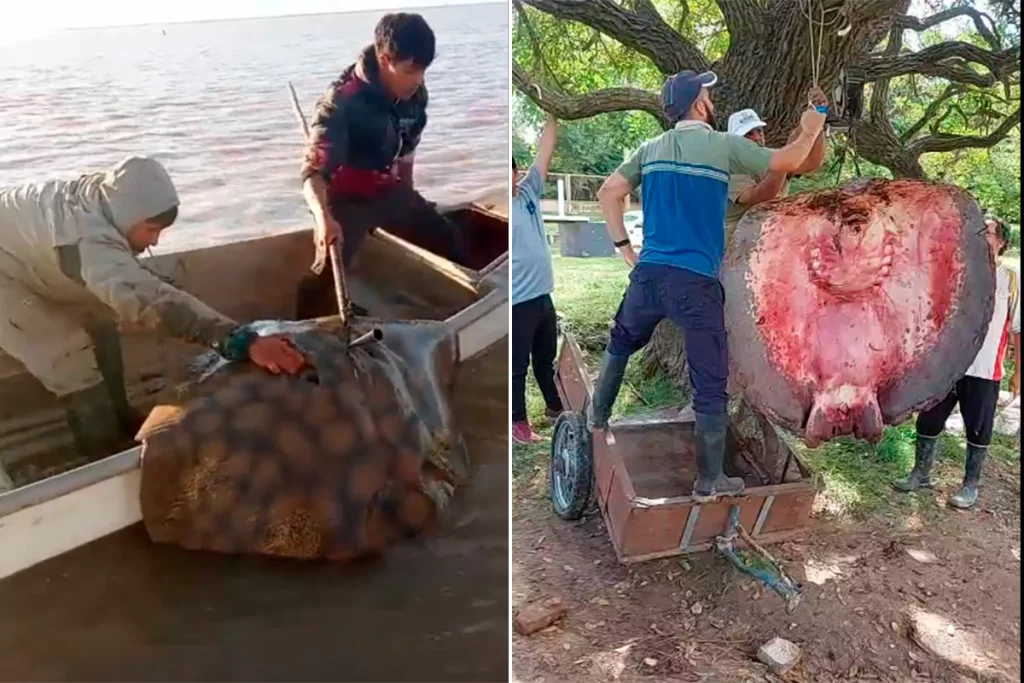 Video: Por segunda vez en un mes, capturaron otra raya gigante en el Río Coronda